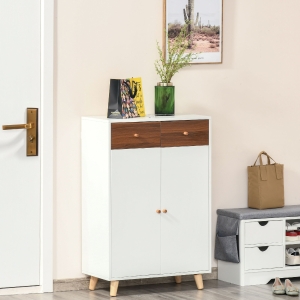 HOMCOM Narrow Shoe Storage with Drawer, 2 Flip Doors and Adjustable Shelves, Shoe Cabinet for 16 Pairs of Shoes, White