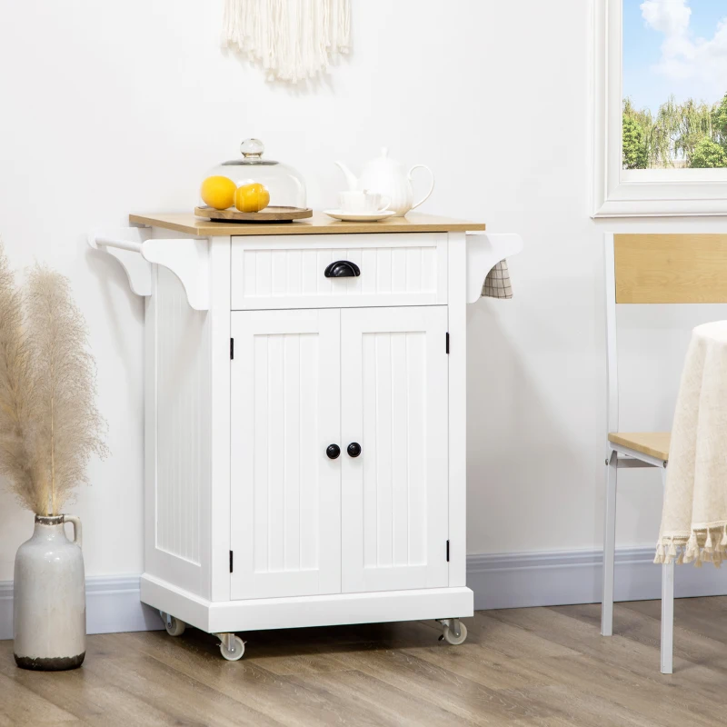 HOMCOM Rolling Kitchen Cart on Wheels, Utility Bar Cart with Drawer, 2 Towel Racks and Adjustable Shelf, White