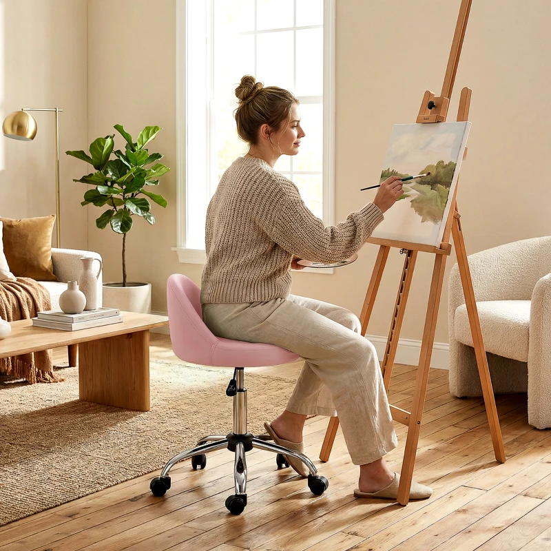 HOMCOM Salon Stool, Adjustable Rolling Stool, Pink(m-1)