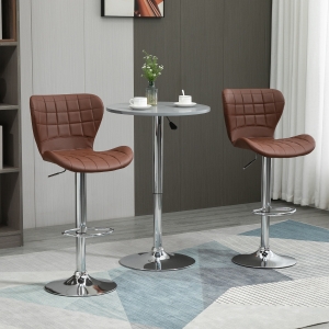 HOMCOM Set of 2 Counter Height Bar Stools Swivel Stool Height Adjustable Bar Chairs with Footrest for Kitchen Dining Home Pub, Brown