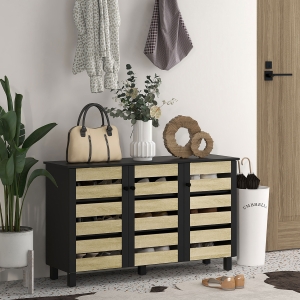 HOMCOM Shoe Cabinet with 3 Slatted Doors, 3-tier Shelving Rack Cabinet with Adjustable Shelves for 15 Pairs of Shoes, Black
