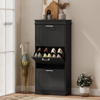 HOMCOM Slim Shoe Cabinet with 3 Flip Drawers and Adjustable Shelves, Narrow Shoe Cabinet for 15 Pairs of Shoes, Black