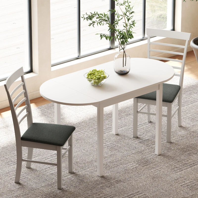 HOMCOM Solid Wood Kitchen Table, Drop Leaf Tables for Small Spaces, Folding Dining Table, White