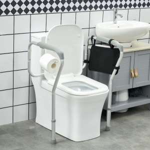 HOMCOM Toilet Safety Rail for Elderly, 300lbs Toilet Safety Frame with Adjustable Height and Width, Storage Pocket, Padded Arms, Assist Grab Bar for Seniors, Easy Installation
