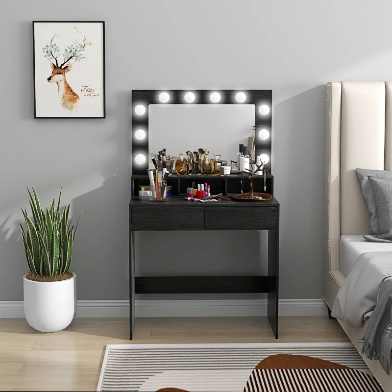 HOMCOM Vanity Table, Makeup Dressing Table with LED Lighting Mirror, Drawers, for Bedroom, Black