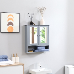 kleankin Medicine Cabinet, Wall-Mounted Bathroom Mirror Cabinet with Double Doors, Open Shelf, and Adjustable Shelf, Modern Bathroom Wall Cabinet, Grey