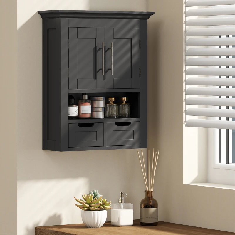 kleankin Bathroom Wall Cabinet, Medicine Cabinet, Toilet Storage Cabinet with Shelf for Living Room and Entryway, Black