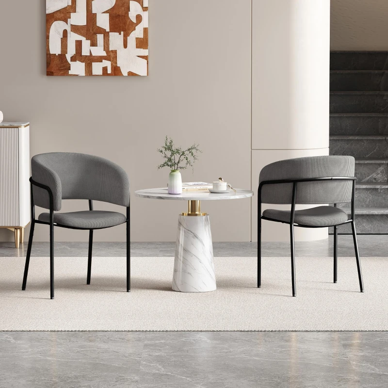 Modern Corduroy Side Chair with Ergonomic Curved Back, Minimalist Lounge Chair for Living Room, 30.5" L x 21.5" W x 19.5" H, Grey