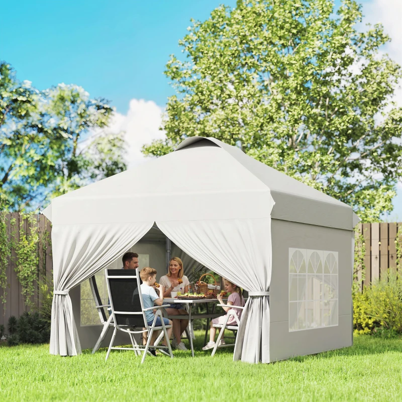 Outsunny 10' x 10' Pop Up Canopy Tent, Instant Sun Shelter, Tents for Parties, with Wheeled Carry Bag, White