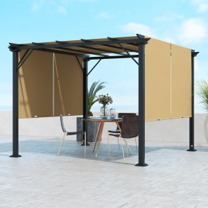 Outsunny 10' x 13' Wall Pergola, Outdoor Gazebo with 2 Curtains and 2 Nettings, UV Resistant, for Patio, Deck, Beige
