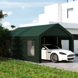 Outsunny 10' x 16' Heavy Duty Portable Carport Tent with Zippered Door, PE Cover for Car, Boat, Motorcycle, Bike, Beige