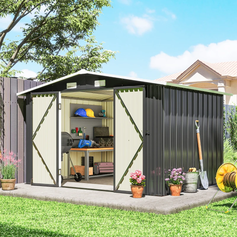 Outsunny 10' x 8' Metal Shed, Heavy Duty Outdoor Storage Shed with 4 Vents and Lockable Double Doors, Dark Grey
