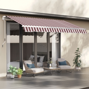 Outsunny 11' x 10' Retractable Awning Fabric Replacement Outdoor Sunshade Canopy Awning Cover, UV Protection, Red & White