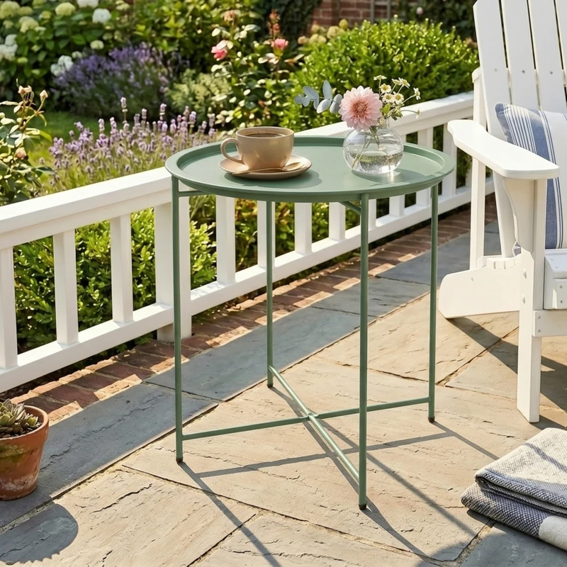 Outsunny 18" Outdoor Side Table with Removable Tray and Folding Legs, Indoor Outdoor for Balcony, Porch, Green