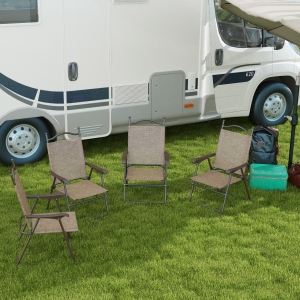 Outsunny 2-Seat Folding Patio Bench Camping Chair, Sports Chair with Armrest, Mesh Fabric Seat for Lawn, Black