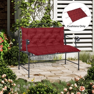 Outsunny 2 Seater Garden Bench Cushion, Soft Thick Outdoor Non-Slip 2 Seater Soft Pad With Backrest for Garden Patio, 47" x 43" x 5", Wine Red