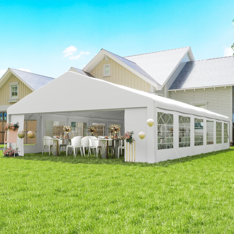 Outsunny 23' x 39' Party Tent, Heavy Duty Outdoor Canopy Tent Shelter with 2 Doors and 12 Windows for Parties, Events, White
