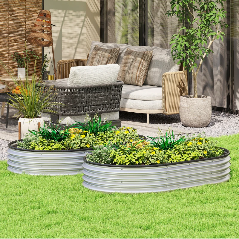 Outsunny 2Pcs Galvanized Raised Garden Bed, 5 x 3 x 1 ft Modular Metal Garden Beds with Rubber Strip Edging, Silver