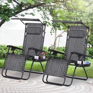 Outsunny Patio Lounge Chair Outdoor Lounger Recliner Folding Camping Chair with Footrest and Storage Pocket, Black Grey