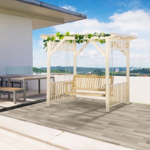Outsunny 3 Seater Patio Swing Chair Convertible Cushioned Bed Outdoor Porch with Canopy and Pillow