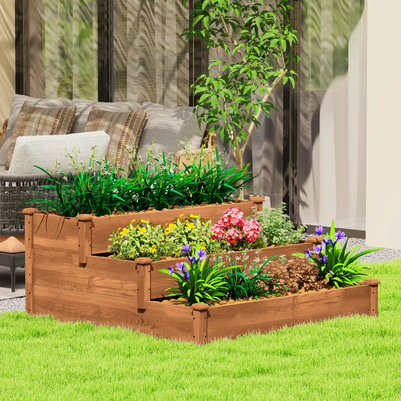 Outsunny 3-Tier Garden Bed Planter Box for Backyard, Patio, 49"x49"x22", Brown