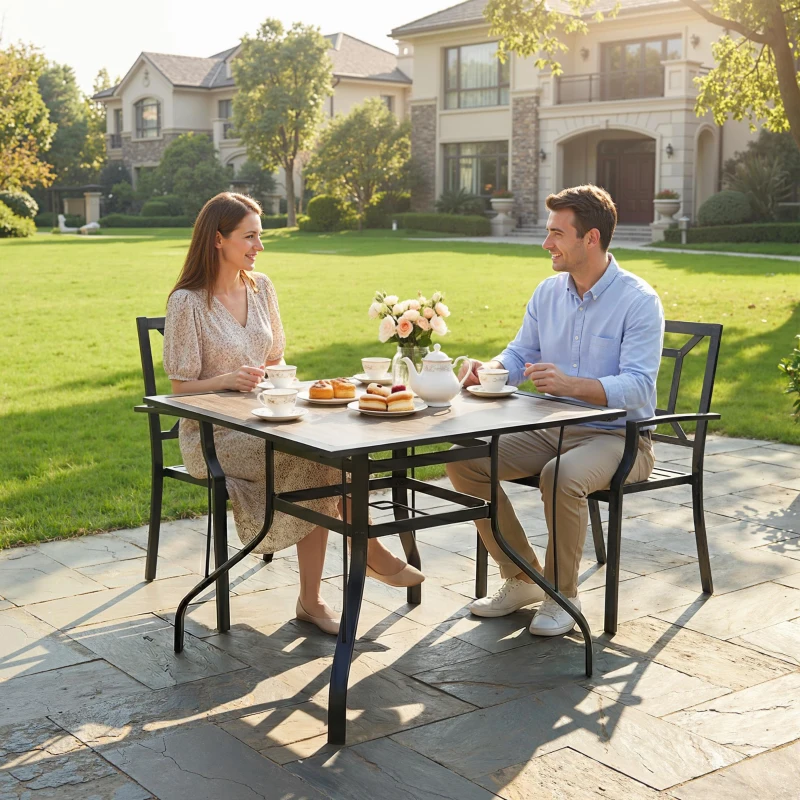 Outsunny 36" x 36" x 28" Square Patio Dining Table with Umbrella Hole, Easy to Clean Top & Rustproof Steel Frame, for Garden Pool