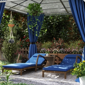Outsunny 3 Pieces Wicker Patio Lounger Set with Table, PE Rattan Outdoor Lounge Chair Set with Cushions, Wheels, 5-Level Reclining Backrest, Headrest, Brown/Grey