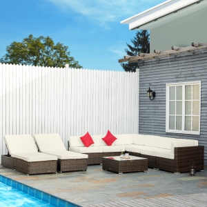 Outsunny 4 Pieces Wicker Patio Furniture Set with Thick Cushions, Outdoor PE Rattan Conversation Sofa Set with Glass Top Table & Extra Wide Seat, Sky Blue