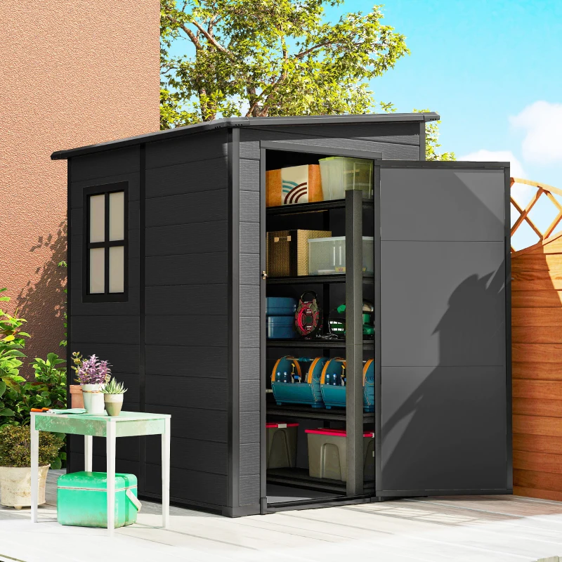 Outsunny 4'x5' Garden Storage Shed, Lean to Shed, Lockable Garden Tool Storage House with Window, Vent, Dark Grey