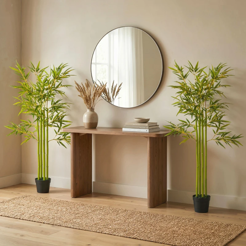 Outsunny 4FT Artificial Bamboo Tree Set of 2, Faux Decorative Plant in Nursery Pot for Indoor Decor
