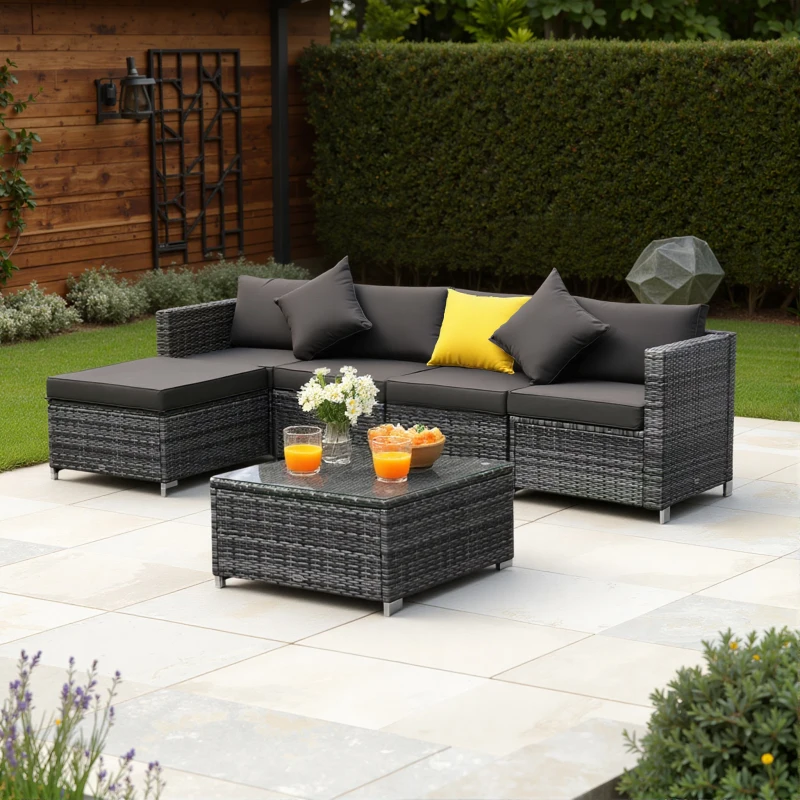 Outsunny 6 Pieces Outdoor PE Rattan Wicker Patio Furniture Sofa Set with Thick Cushions, Deluxe Garden Sectional Couch with Glass Top Table, Mixed Grey and Charcoal