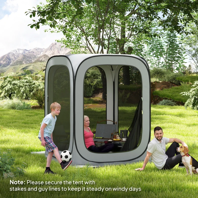 Outsunny 6 x 6ft Pop Up Screen Tent, UPF50+ Portable Camping Gazebo Screen House with Carry Bag, Light Grey