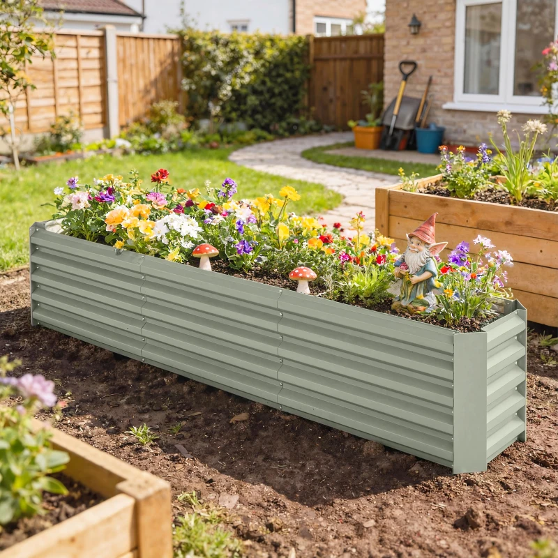 Outsunny 8 x 1.3 x 1.5ft Galvanized Raised Garden Bed, Reinforced Outdoor Planter Box with Open Bottom, Light Grey
