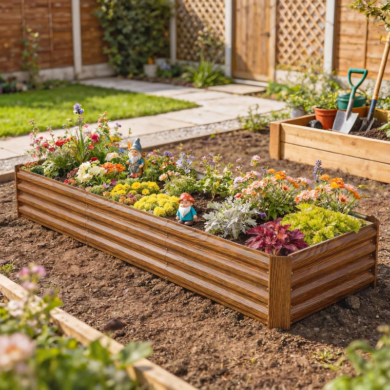 Outsunny 8 x 2.6 x 1.5ft Galvanized Raised Garden Bed, Reinforced Outdoor Planter Box with Open Bottom, Brown Wood Effect