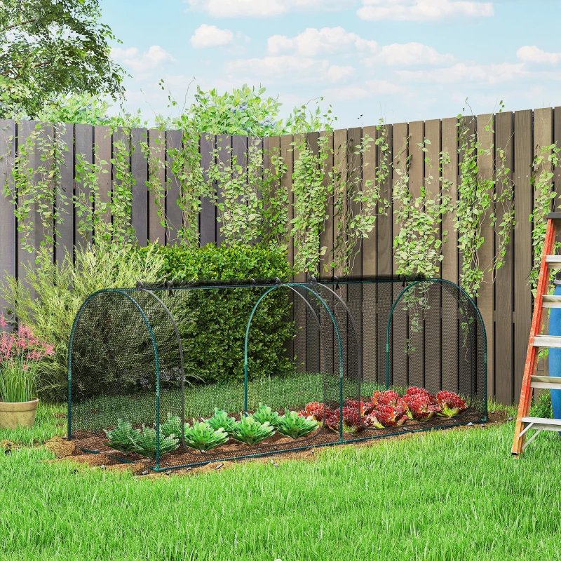 Outsunny 8' x 3' Crop Cage, Garden Plant Protector, with 3 Zippered Doors and 6 Ground Stakes, for Garden, Yard, Lawn, Black