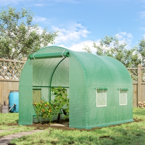Outsunny 8'x6.6'x6.6' Heavy Duty Walk-in Greenhouse Garden Tunnel Hot House Outdoor Flower Vegetable Growth Warm House Roll Up Door, Windows, Steel