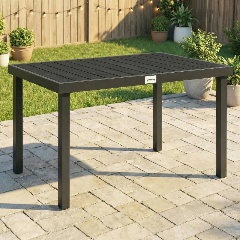 Outsunny Aluminum Outdoor Dining Table for 6, Patio Rectangular Table, 47.2" x 35.4" x 29.1", Black