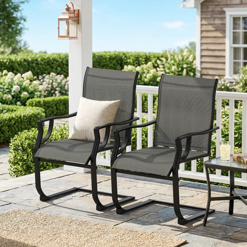 Outsunny C Spring Motion Patio Chairs Set of 2 with Curved High Backrest, Armrest, All Weather Breathable Fabric, Metal Frame