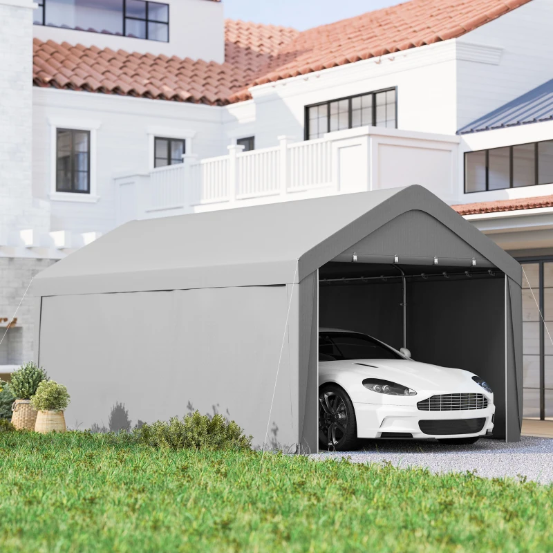 Outsunny Carport, 10 x 20 ft Portable Garage with 2 Roll-Up Doors and Removable Sidewalls for Car, Truck, Boat, Light Grey
