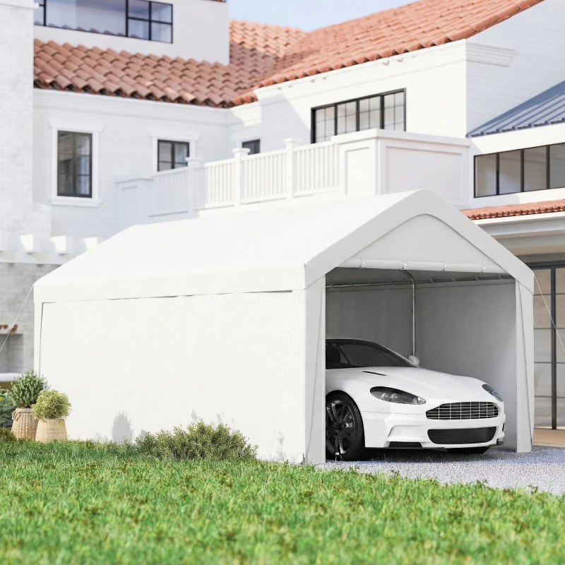 Outsunny Carport, 10 x 20 ft Portable Garage with 2 Roll-Up Doors and Removable Sidewalls for Car, Truck, Boat, White