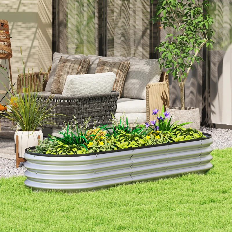 Outsunny Galvanized Raised Garden Bed, 6 x 2 x 1 ft Modular Metal Garden Beds with Rubber Strip Edging, Silver