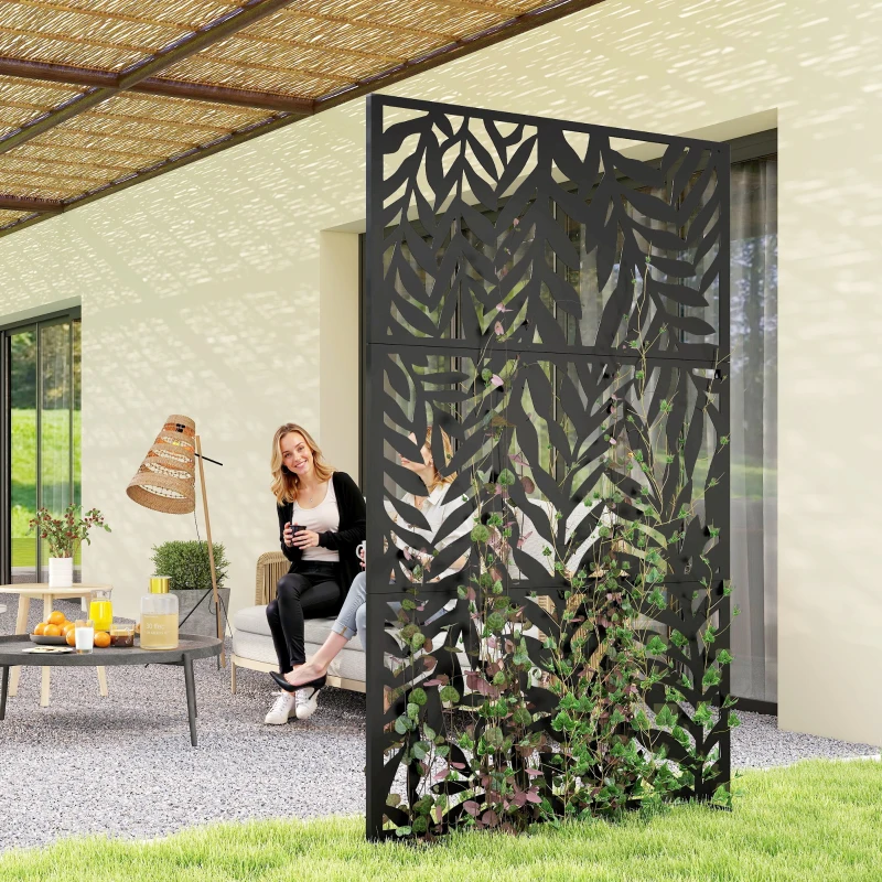 Outsunny Metal Outdoor Privacy Screen, 72" x 38" Freestanding Outdoor Divider, Black