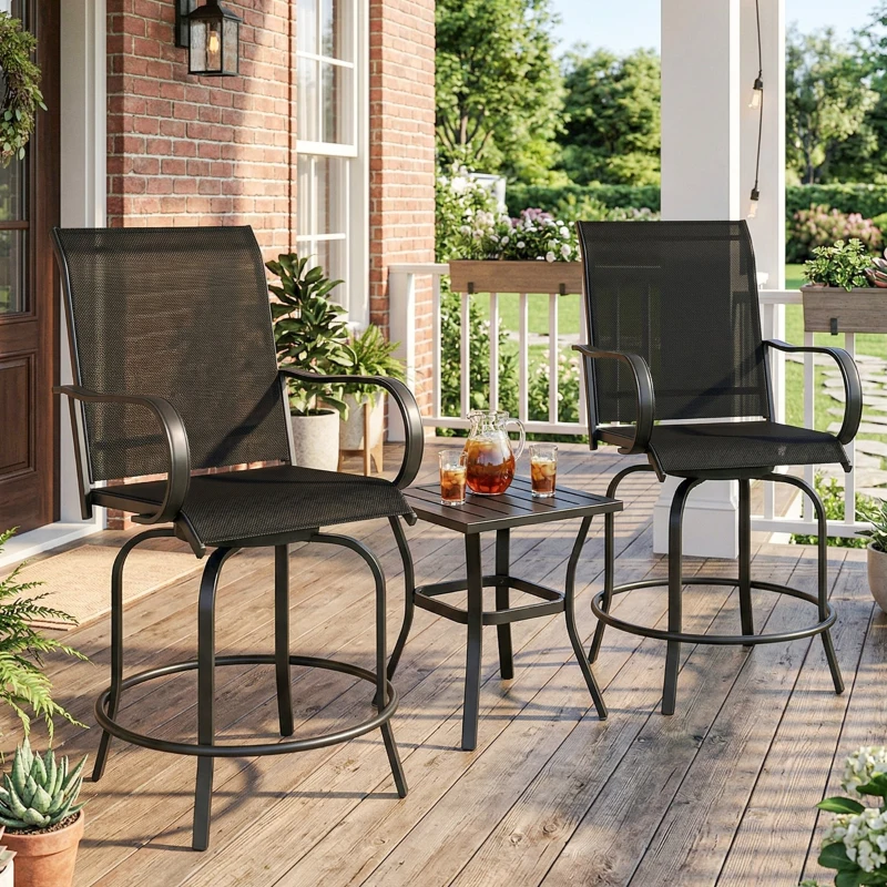 Outsunny Outdoor Bar Stools Set of 2, 360° Swivel Bar Height Chairs, 27.6" x 28.7" x 48.4", Black