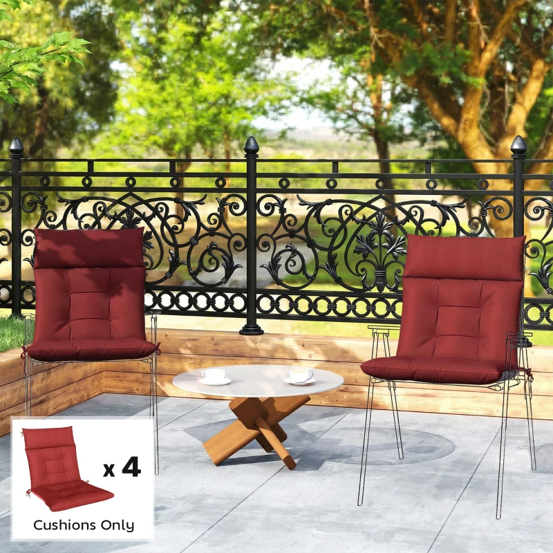 Outsunny Patio Chair Cushions Set of 4, Waterproof Non-Slip Lounge Chair Cushions, 44"x21", Wine Red