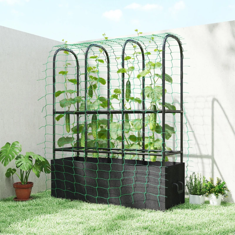 Outsunny Raised Garden Bed with Trellis, Tomato Cage with 52.8 Gal Grow Bag, Garden Cucumber Trellis Plant Cage