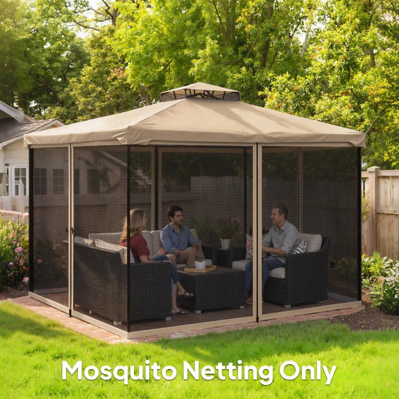 Outsunny Replacement Mosquito Netting for Gazebo 12' x 12' Black Screen Walls for Canopy with Zippers, Beige