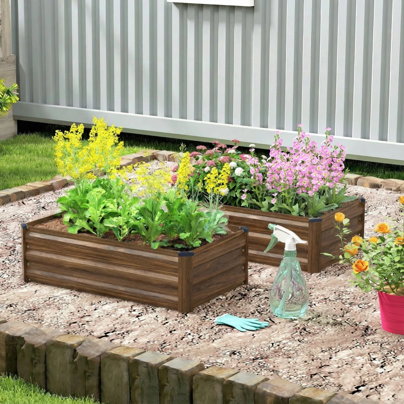 Outsunny Set of 2 Galvanized Raised Beds for Garden, Outdoor Planter Box for Flowers, Herbs and Vegetables, Dark Brown