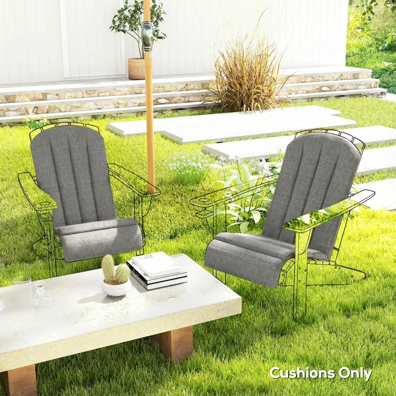 Outsunny Set of 2 Patio Chair Cushions, High Back Adirondack Chair Cushion with Ties, High-Density Foam, Dark Grey