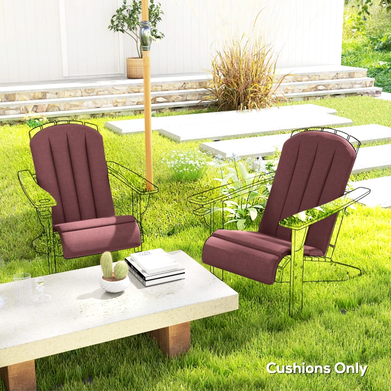 Outsunny Set of 2 Patio Chair Cushions, High Back Adirondack Chair Cushion with Ties, High-Density Foam, Wine Red