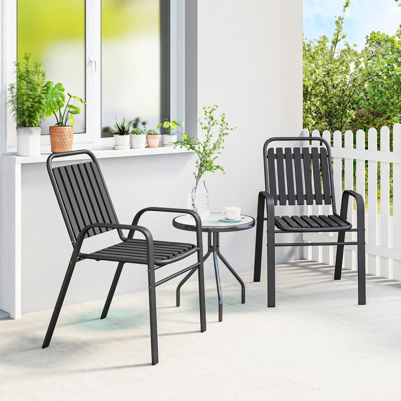 Outsunny Stackable Outdoor Dining Chairs Set of 2, for Patio, Balcony, Deck, Garden, Black